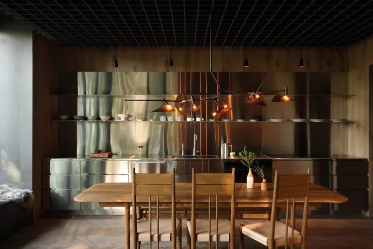 Accommodating up to four guests, White Rock features two well-appointed bedrooms with smoked oak interiors, raw steel shelving, and industrial light fixtures and a plethora of the studio’s custom furniture and lighting prototypes. The soothing atmosphere is enhanced by antique linens, hand-dyed fabrics, and large windows offering enchanting forest views.
